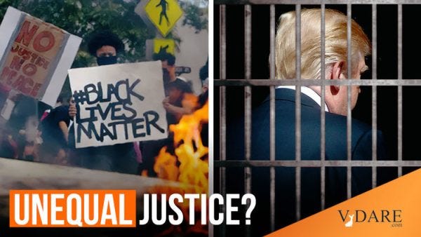 More broadly, activists have pushed the DOJ to persecute the enemies of Black Lives Matter and black criminality generally. Thus the DOJ indicted the four Minneapolis police officers involved in the death of felon George Floyd They were accused of violating federal civil rights laws, which even The New York Times acknowledged was a “rare instance” [Former Police Officers Indicted on Civil Rights Charges in George Floyd’s Death, by Katie Benner and Nicholas Bogel-Burroughs, May 7, 2021]. The DOJ also launched an investigation into the entire Minneapolis Police Department for alleged “racism” and possible Civil Rights violations. The four officers were all found guilty and received lengthy sentences. Black Lives Matter cheered [Two Minnesota ex-officers sentenced on federal charges in George Floyd case, by Brandon O’Brien, Reuters, July 27, 2022].