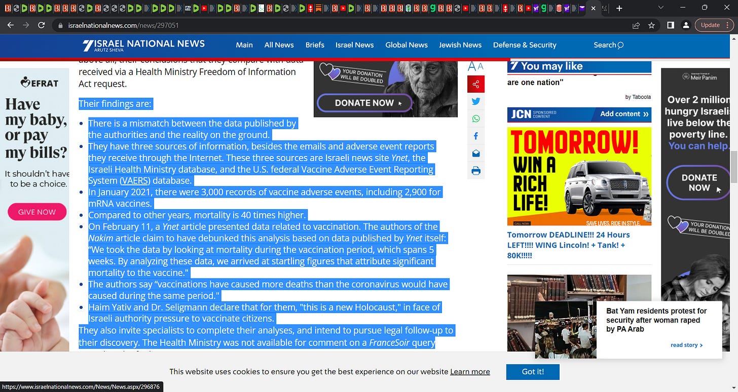 This substack has been referring to Israel as Pfizer’s petri dish, with the DEATHVAX™ being a (new) holocaust in a syringe.