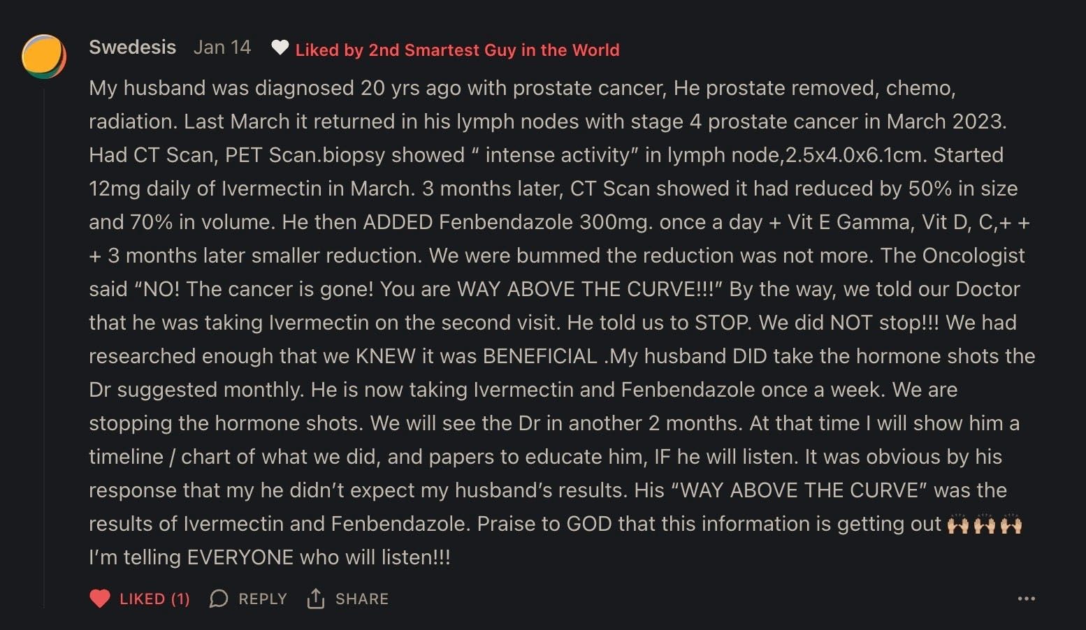 Ivermectin & Fenbendazole Subscribe Success Stories: Prostate Cancer, Inflammation & Gastric Healing