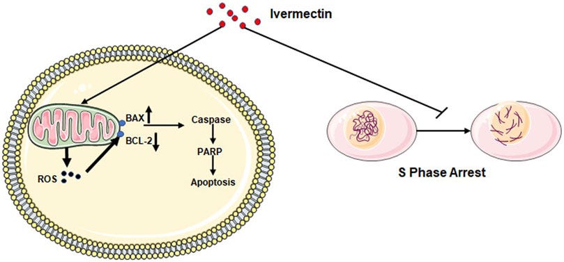 Overall, ivermectin suppressed cell proliferation by promoting ROS-mediated mitochondrial apoptosis pathway and inducing S phase arrest in CRC cells, suggesting that ivermectin might be a new potential anticancer drug therapy for human colorectal cancer and other cancers.