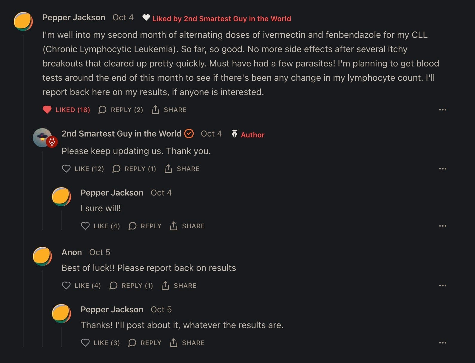 Continuing this Substack’s series on anecdotal repurposed drug case studies is our latest trio of encouraging and incredibly inspirational subscriber comments.