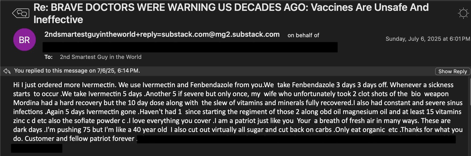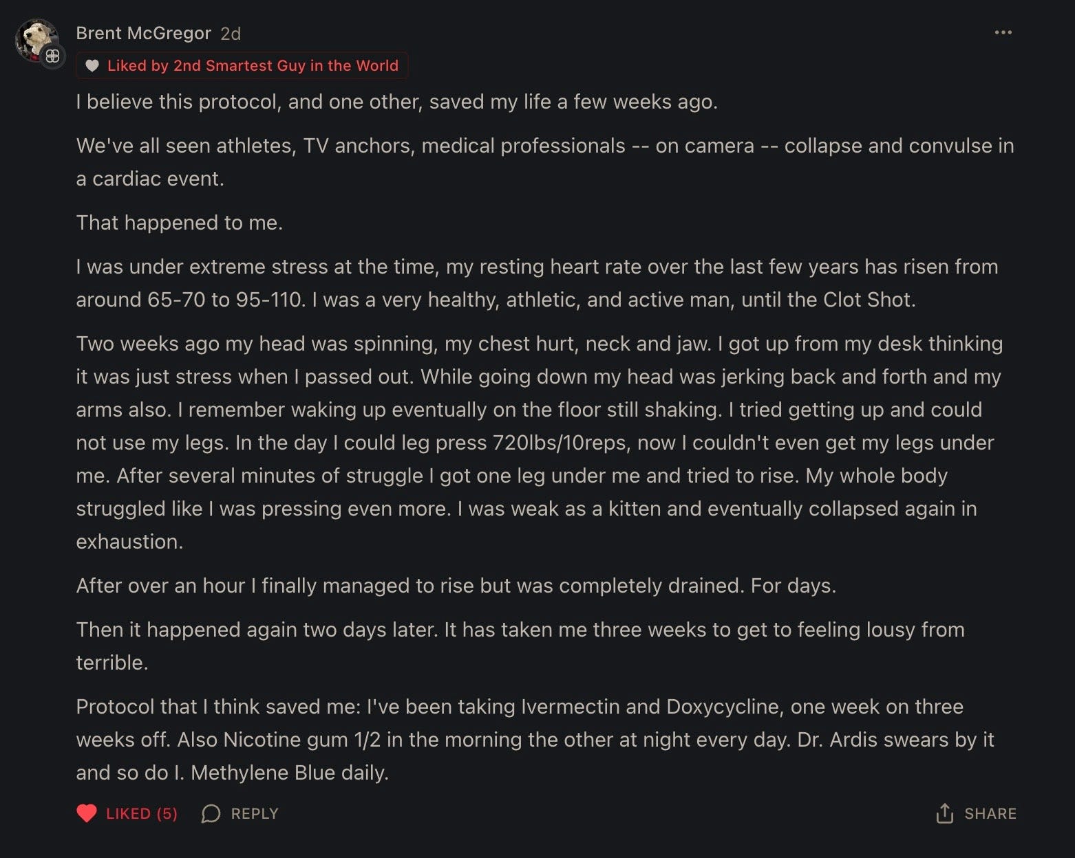 After 10 days of dosing Ivermectin the Moderna adverse events lifted, which is a miracle given how especially dangerous this perma-EUA offering is, even more so than Pfizer’s poisonous injection.