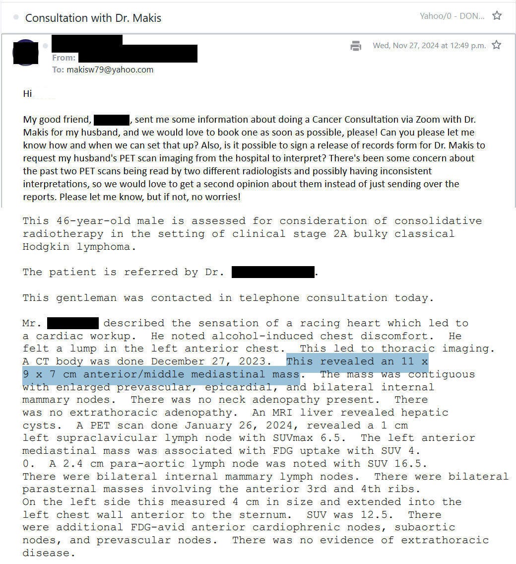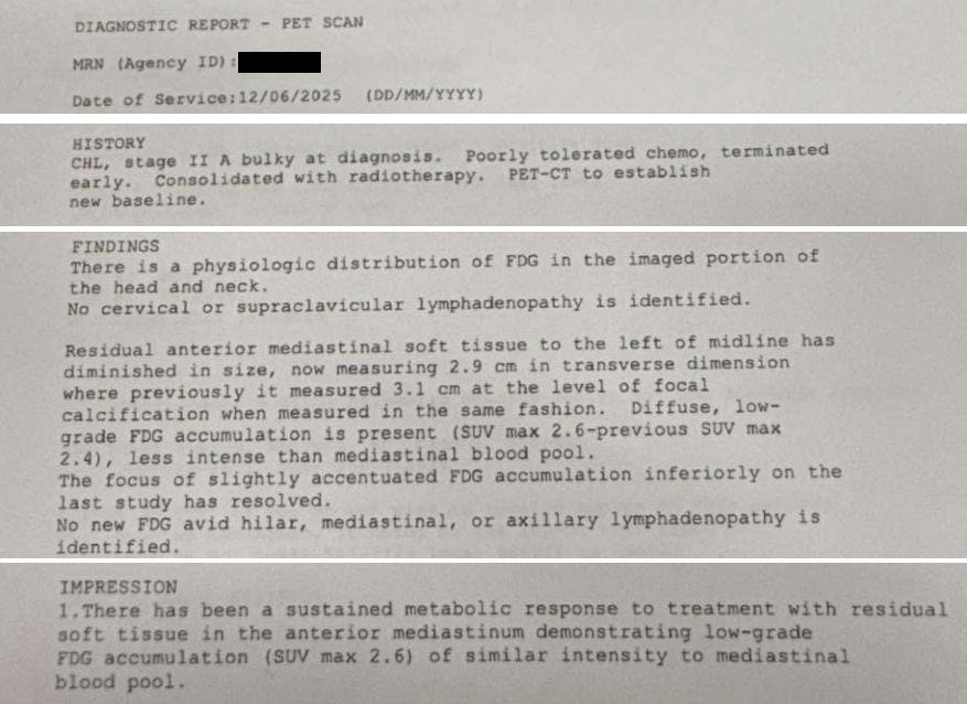 An incredible story of lymphoma - from a massive 11cm mediastinal tumor to "Cancer Free".