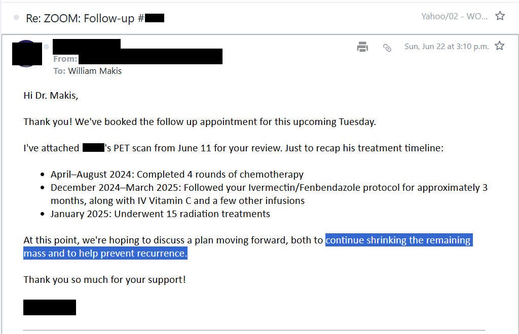 NEW ARTICLE: IVERMECTIN and FENBENDAZOLE Testimonial - 46 yo Canadian man with Stage II Hodgkin Lymphoma (9x7x11cm mediastinal mass) goes into remission after 3 months with Ivermectin, Fenbendazole and Radiation!