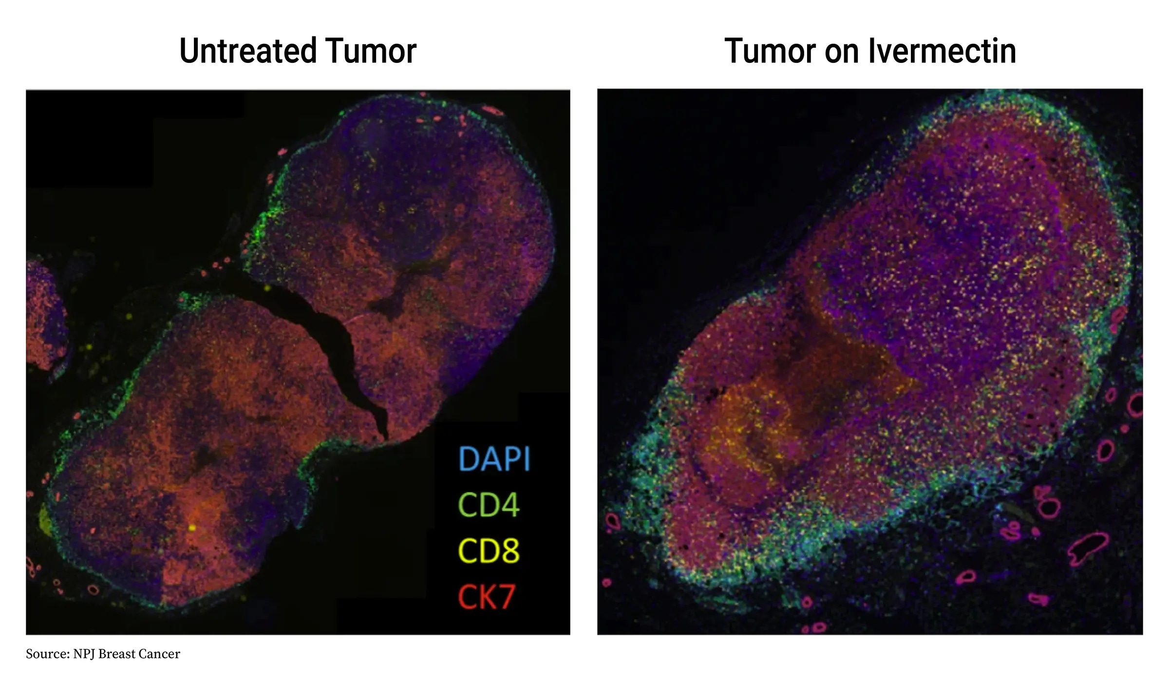 Dr. Lee’s research found that when mice with breast cancer received ivermectin, immune cells would begin to appear in tumors that previously had none. This process is known as turning “cold” tumors “hot.”
