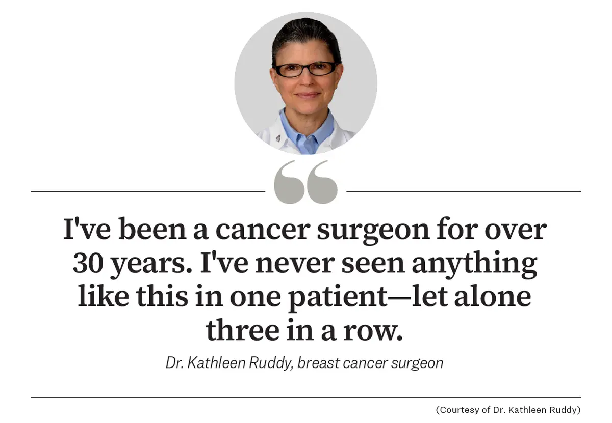 “I’ve been a cancer surgeon for over 30 years. I’ve never seen anything like this in one patient—let alone three in a row,” Dr. Ruddy said.