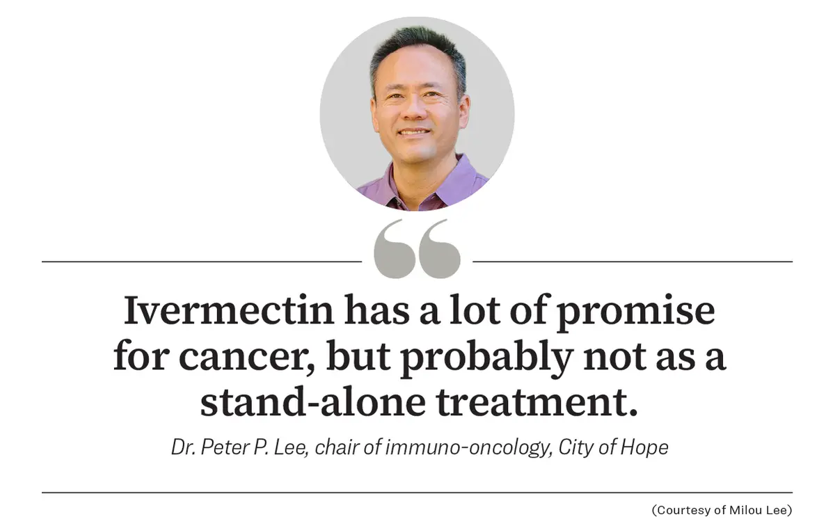 Dr. Peter P. Lee, chair of immuno-oncology at the City of Hope, is a leading researcher in the United States on ivermectin as an immunotherapeutic drug for cancer.