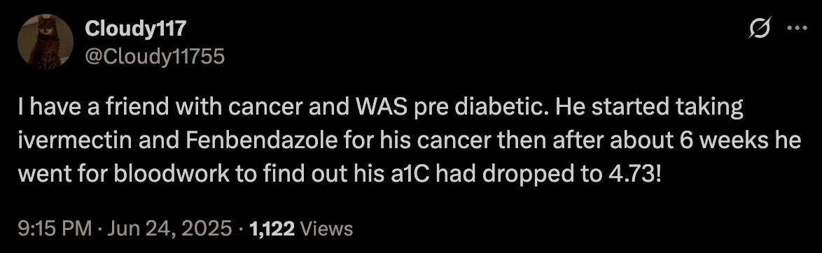 …it turns out that Fenbendazole and Ivermectin may also help reverse diabetes.