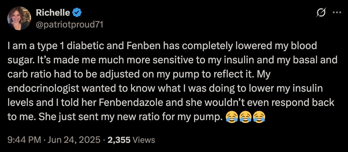 It also turns out that Fenbendazole may in fact reverse diabetes; to wit: