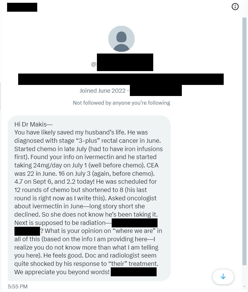 1. This Oncologist recommended against Ivermectin and was dead wrong. The Oncologist would have harmed this patient with their incompetent “advice”.