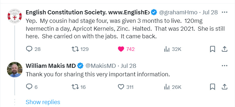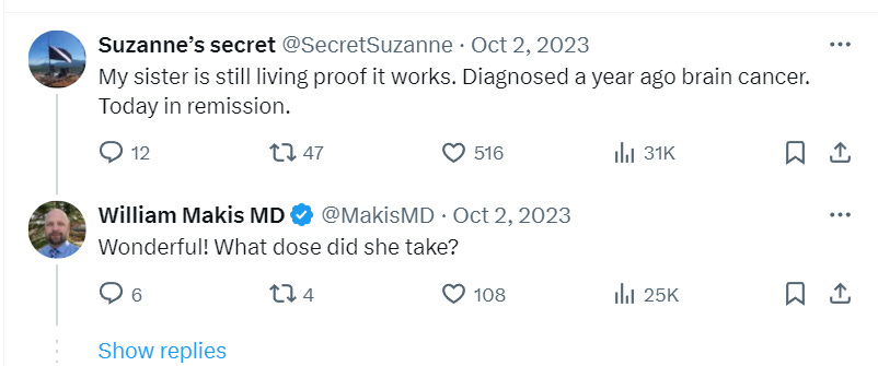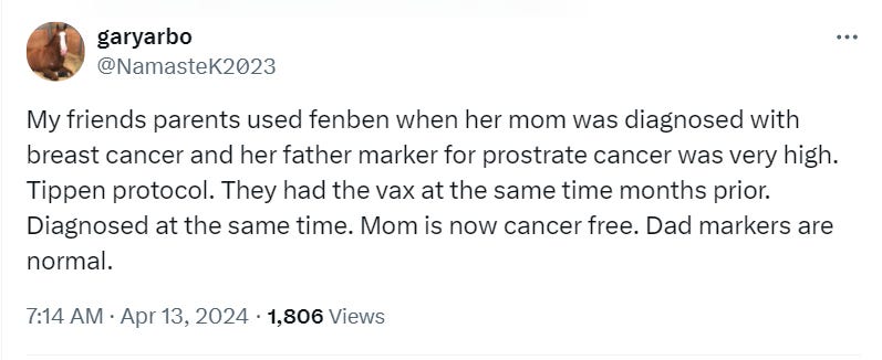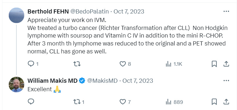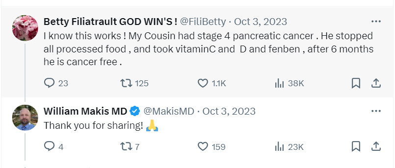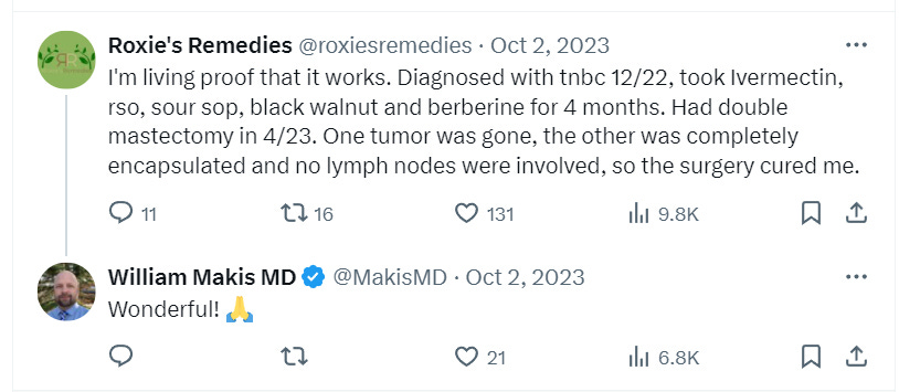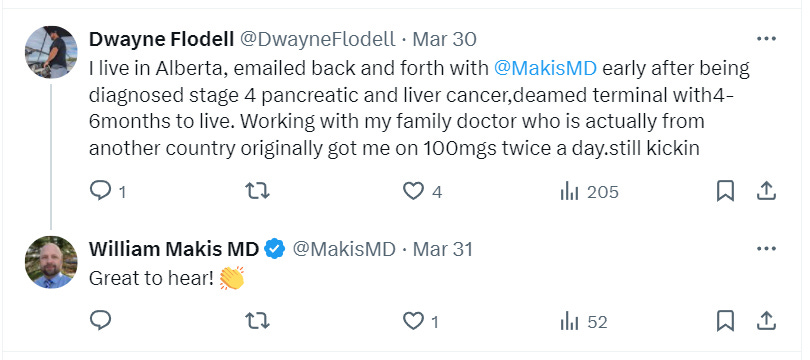 And now without further ado here is Dr. Makis adding to this Substack’s SUBSCRIBER SUCCESS STORIES series with 30 31 anecdotal cancer remission cases: