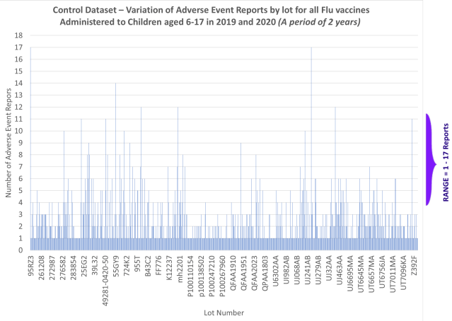 But first a control dataset was created using all adverse reactions reported against all influenza vaccines administered to all children aged 6 to 17 during 2019 and 2020, a period of two years.