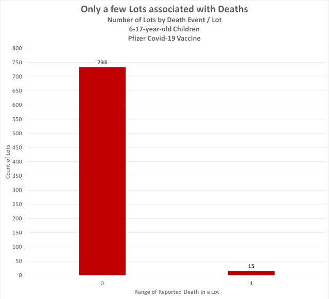In all, between 2% (15 lots) and 4% (29 lots) of the lots of Pfizer vaccine administered to children were responsible for an adverse reaction resulting in death.