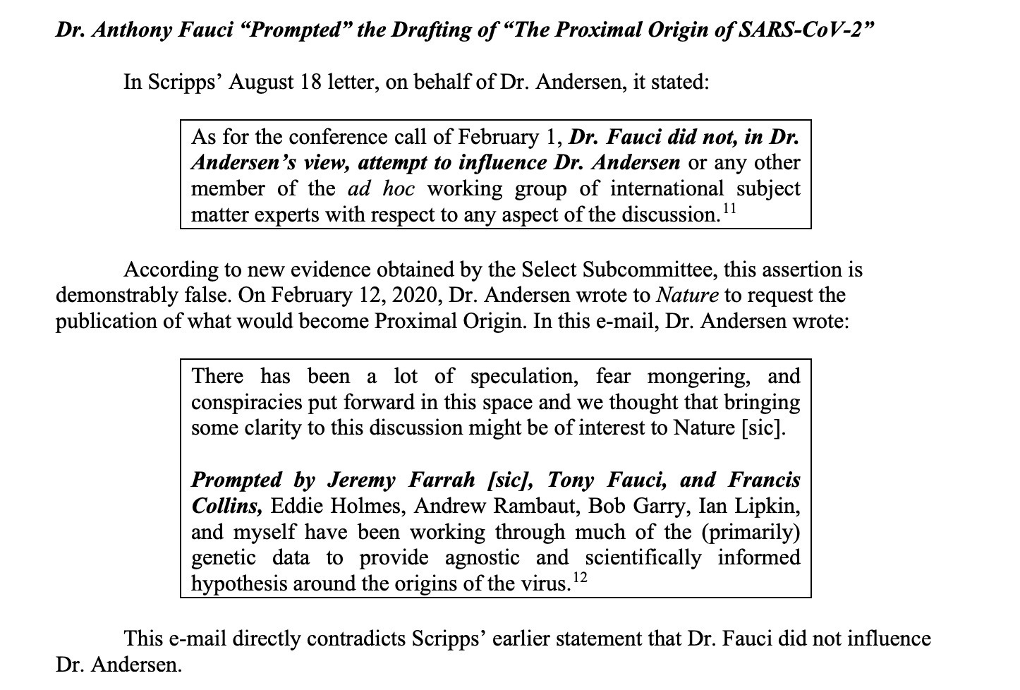 JUST IN - Dr. Mengele 2.0 AKA Dr. Fauci "Prompted" the Drafting of "Proximal Origins" to Disprove the COVID Lab Leak Theory, According to New Evidence Obtained by the Select Subcommittee