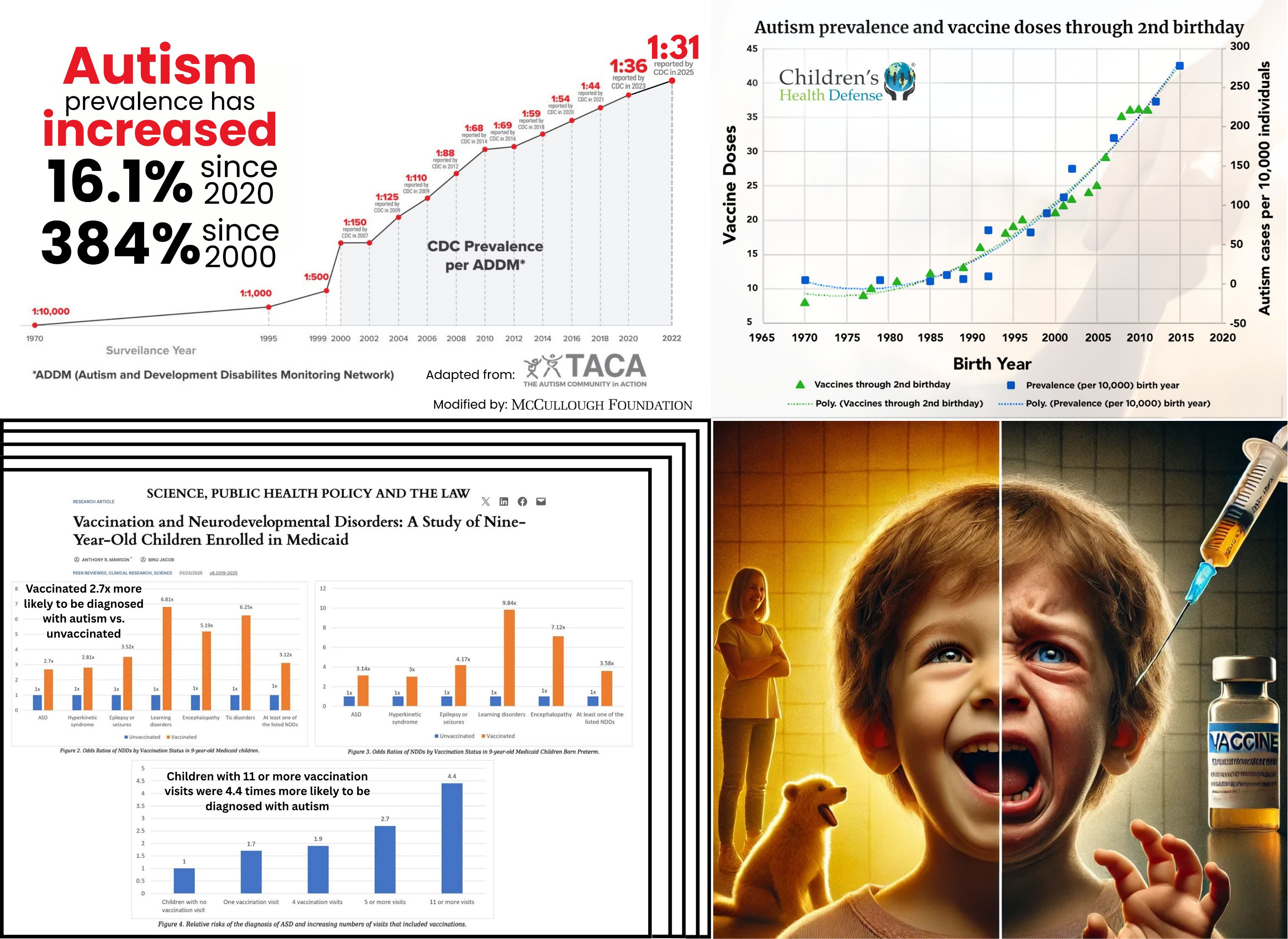 5️⃣ Tomljenovic & Shaw: A strong correlation (r=0.92, p<0.0001) exists between increased aluminum adjuvant exposure and the rise in ASD prevalence over two decades.