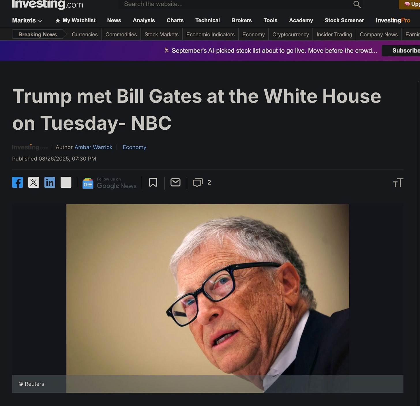 Why is this unelected eugenicist, and one of the cabal’s more prominent front men having an audience with President Trump aka President Operation Warp Speed?