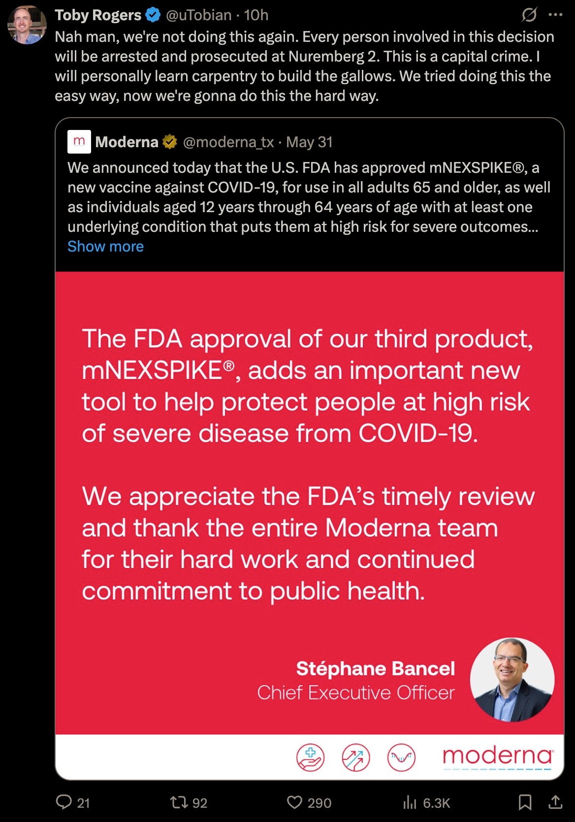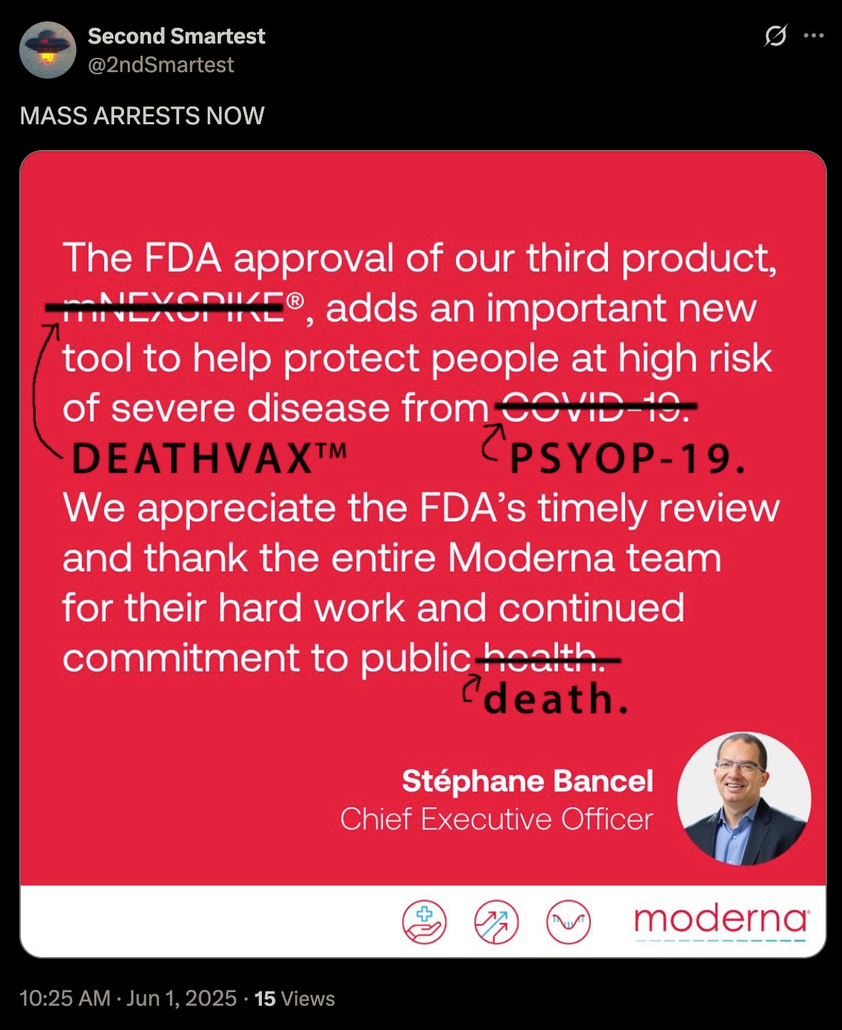MASS ARRESTS NOW: The Criminal FDA Approves Moderna's mNEXSPIKE® PSYOP-19 "Vaccine"