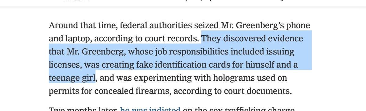 After getting arrested in June 2020, at some point Mr. Greenberg (lawyer’s?) approaches Bill Barr’s DOJ with a proposition: he claims he can provide evidence that a sitting Congressman (Gaetz) had engaged in sex acts with a minor.