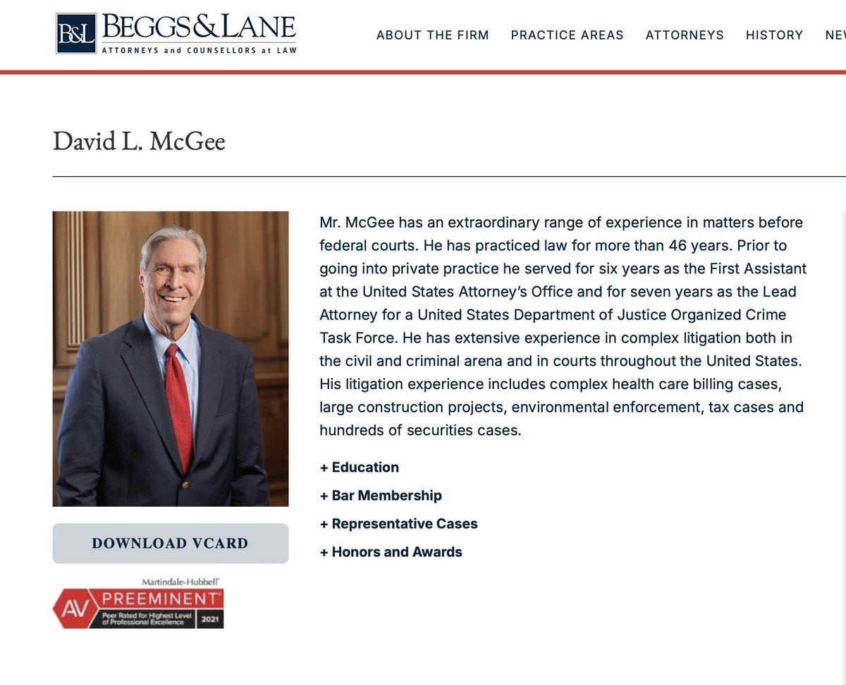 Said he was a former prosecutor for the Northern District of Florida who now worked at the prestigious Biggs & Lane law firm in Pensacola.