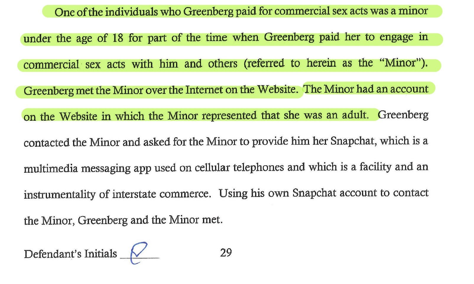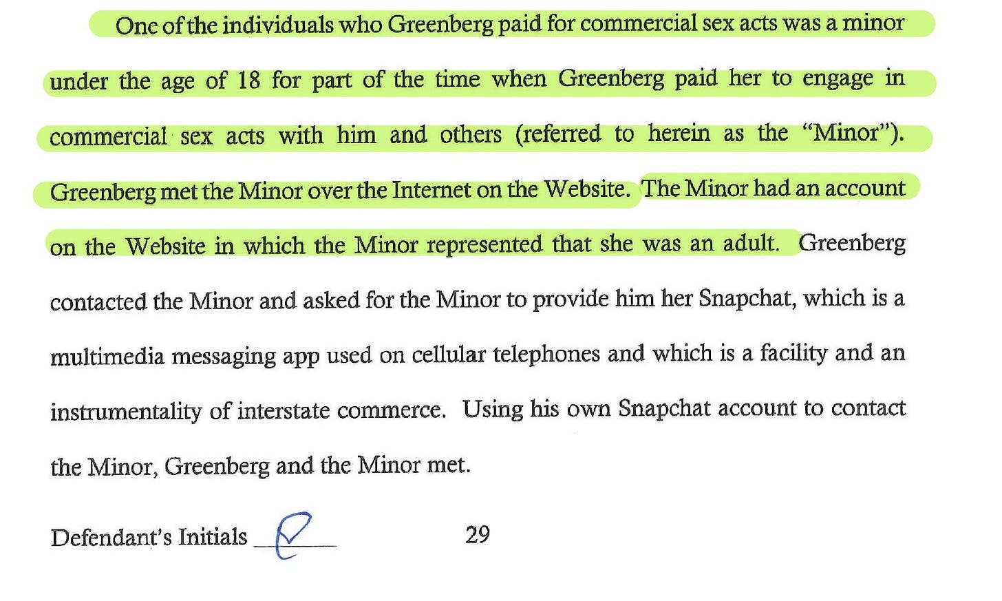 Further investigation revealed that from December 2016 through 2018 Joel Greenberg was a customer on a “Sugar Daddy” website where he solicited various women for sex and escort services. This is where he met the aforementioned 17 year old.