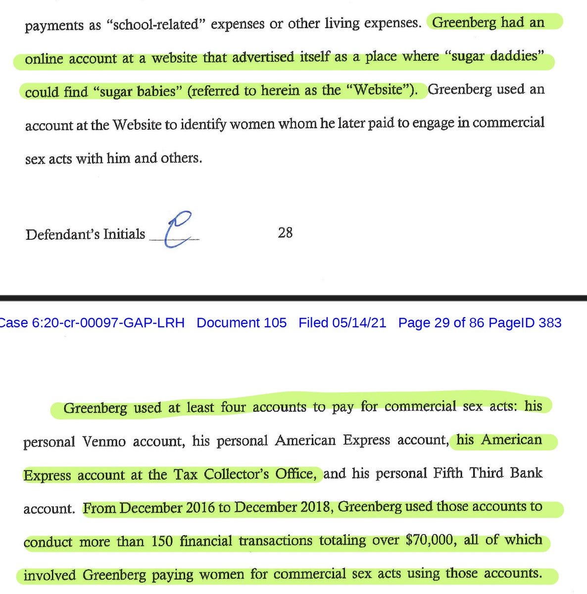 All told, Mr. Greenberg spent over $70,000 on hookers he met on the Sugar Daddy website, much of which he paid for with his government issued AMEX card.