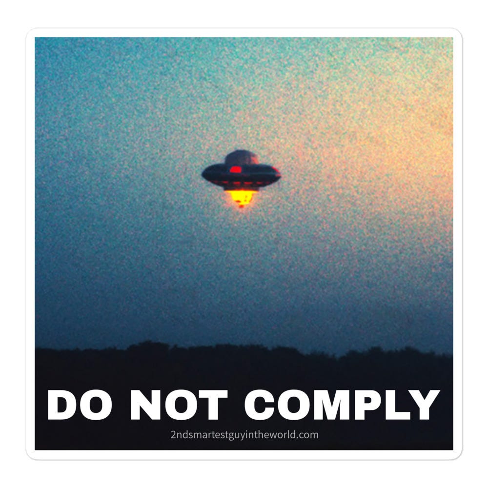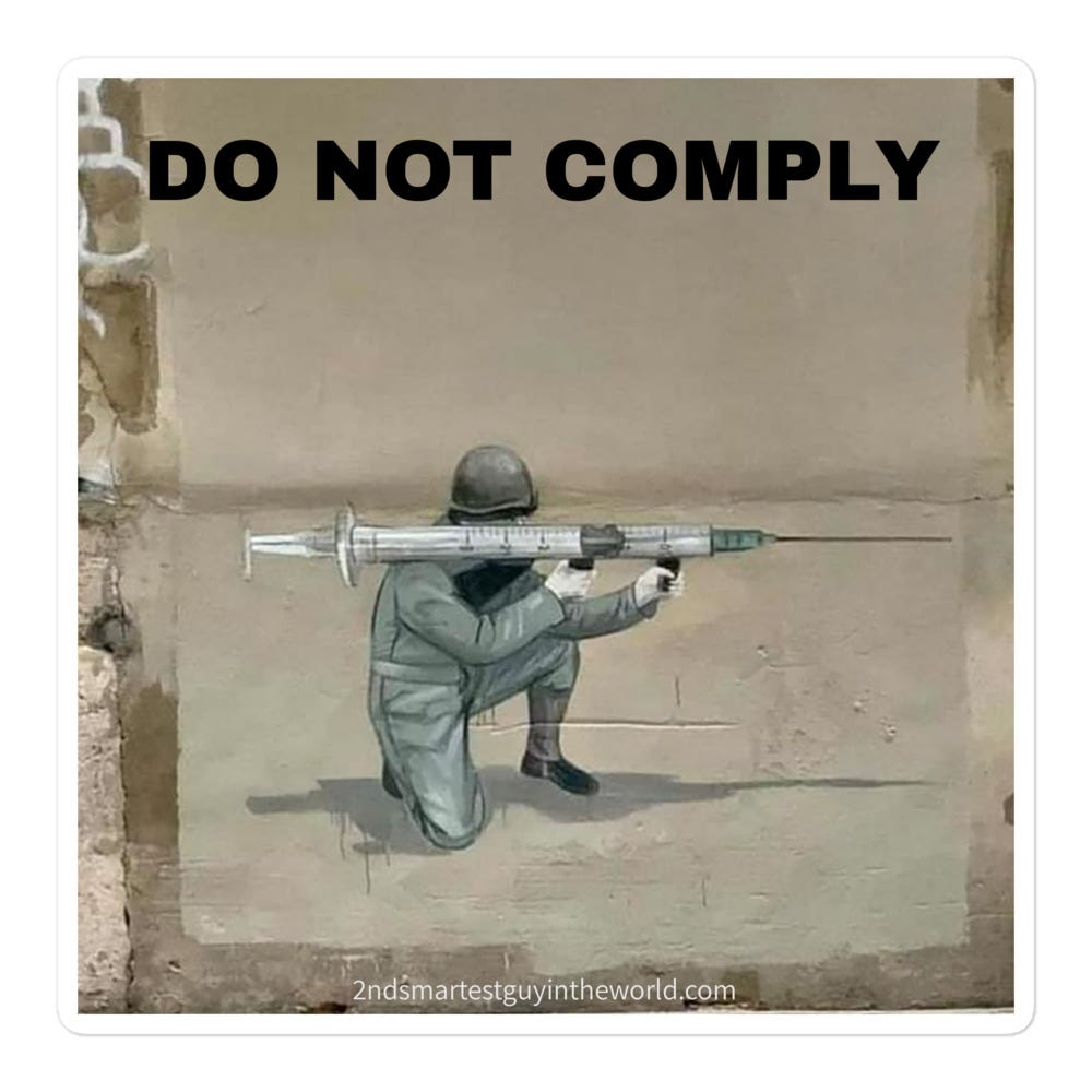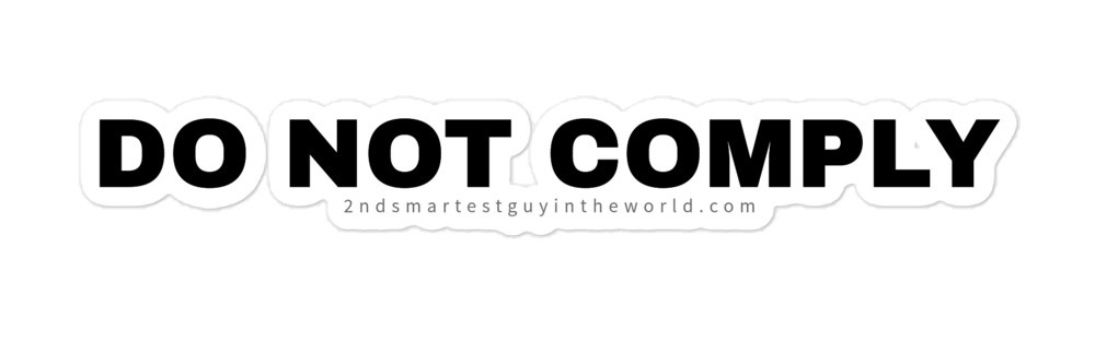 Ask and you shall receive: you can now proudly display your noncompliance for all to see, and you can even plaster these stickers on the CDC, FDA, UN, WEF headquarters or on your nearest lamp post, mailbox, building, etc.*