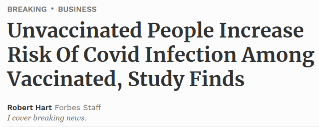 A new study which has been publicised by Forbes, makes the bold claim that “unvaccinated people increase the risk of Covid infection among the vaccinated”.