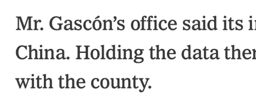 Mr. Gascón’s office said its investigators had found data stored in China. Holding the data there would violate Konnech’s contract with the county.