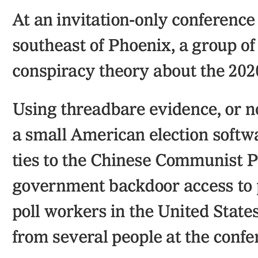These crazed right-wing “domestic terrorists” happen to have been right about pretty much everything concerning the stolen election. Meanwhile, The NY Pravda was hard at work attempting to discredit these “election deniers” who were correctly claiming that the election software company Konnech had clandestine ties to the CCP.
