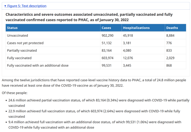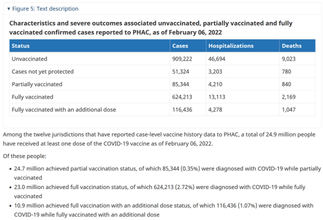 Here are the tables from the January 30th, February 6th, February 13th, February 20th, and February 27th, Government of Canada Covid-19 Daily Epidemiology Update’ reports showing the number of cases, hospitalisations and deaths by vaccination status from as far back as 14th December 2020, as well as the total population sizes of each vaccine group at the time of each report –