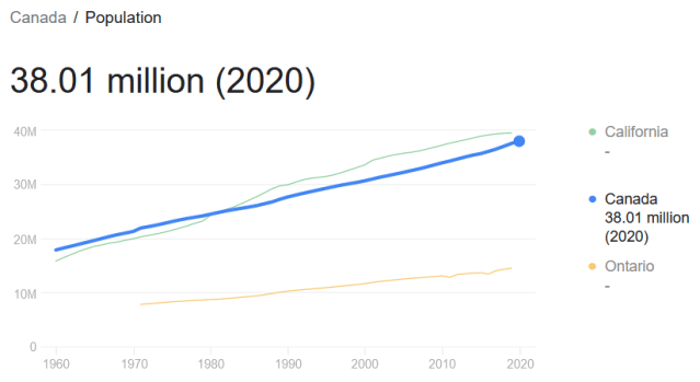 The population of Canada is approximately 38.01 million.