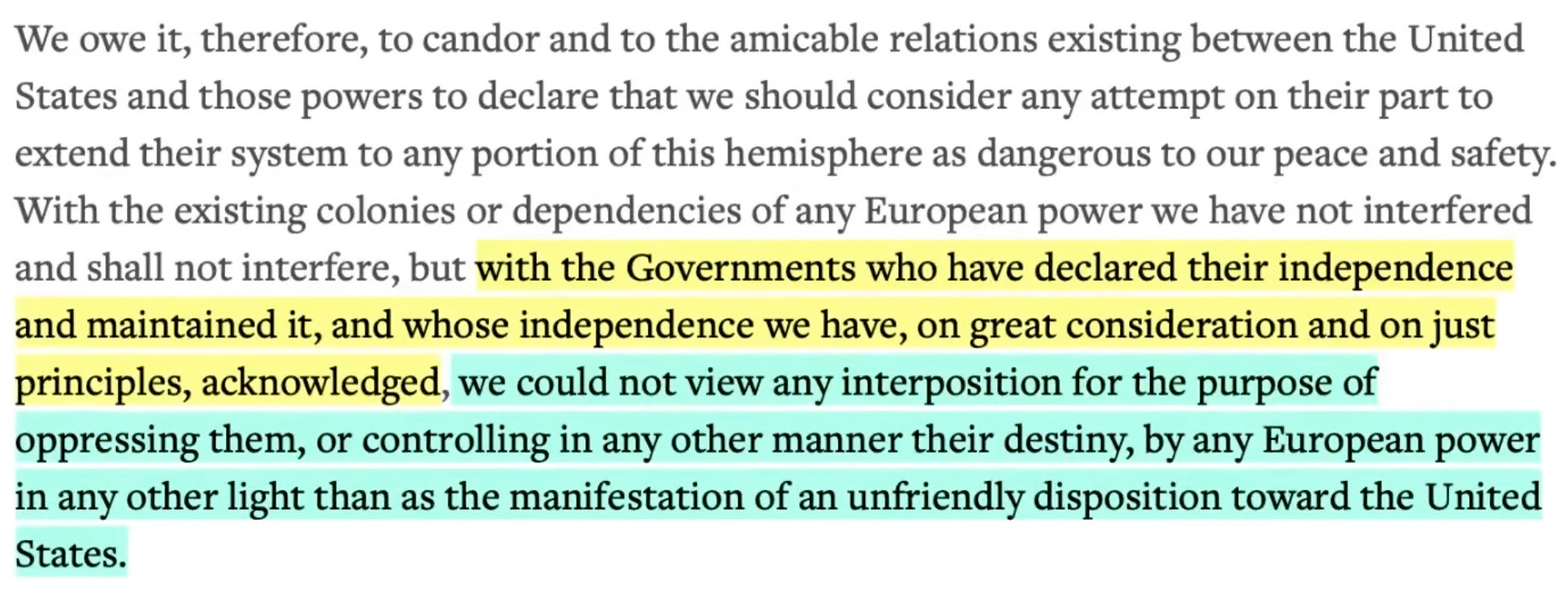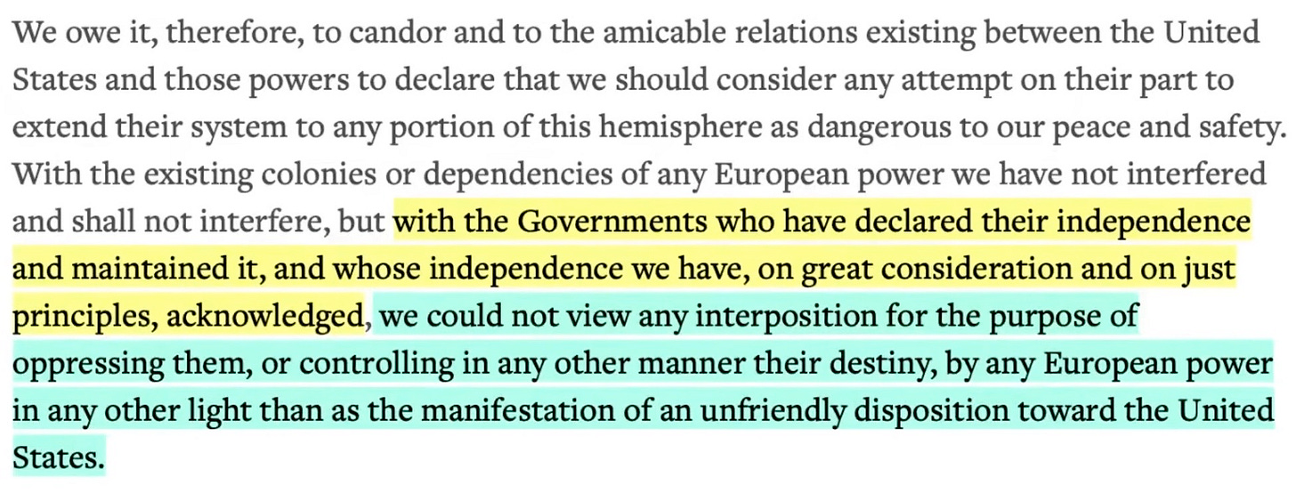 Reviewing Monroe’s very own words, he explicitly stated that his doctrine was never intended for policing the hemisphere: