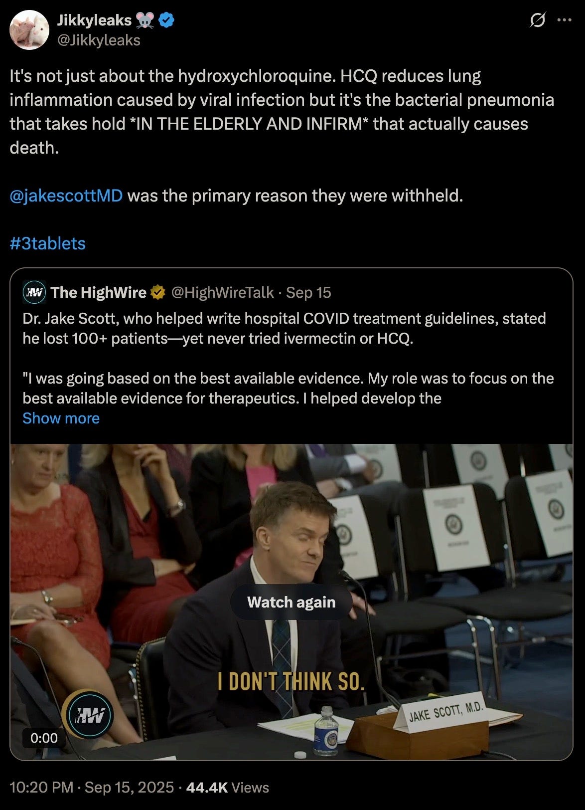 …they also do not want anyone knowing about the repurposed drug that they initially went hardest after in Hydroxychloroquine, because this was the first alternative early treatment approach that was used at the start of the scamdemic that actually worked for the gain of function C19 virus.