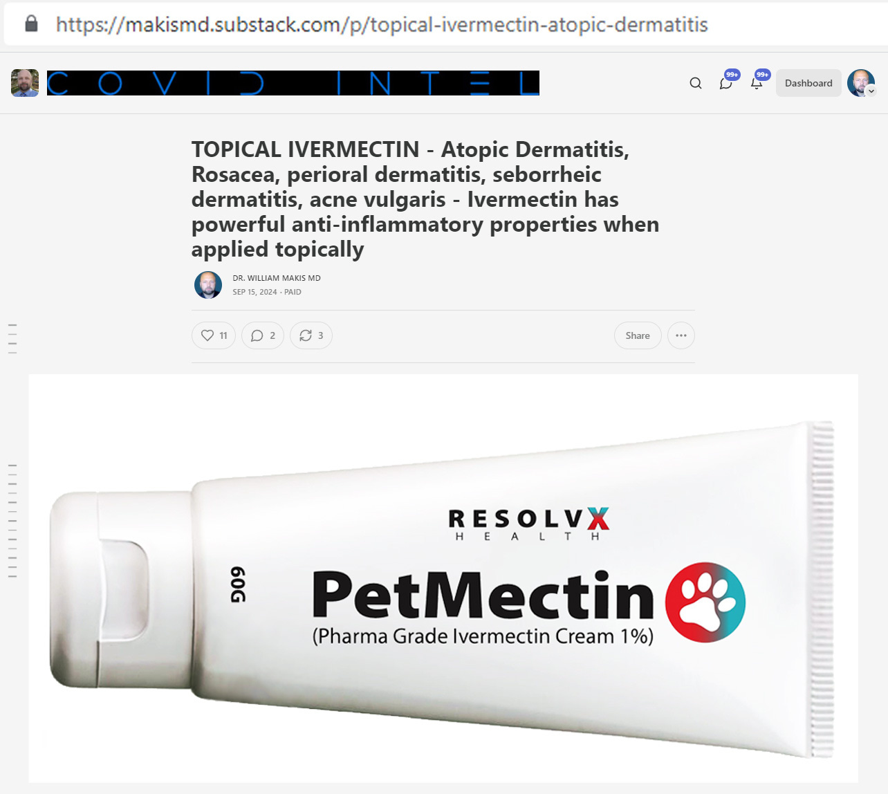And here is Dr. Makis touting the benefits of Ivermectin cream for treating many inflammatory and autoimmune skin conditions, such as acne, eczema, and psoriasis... even skin cancers: