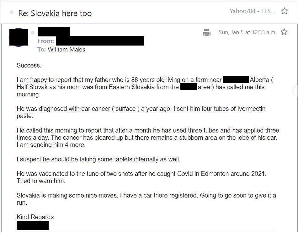 NEW ARTICLE: IVERMECTIN Topical Cream Testimonial - 88 year old Alberta farmer with Ear Cancer has 4 tubes of Ivermectin paste sent to him by his son