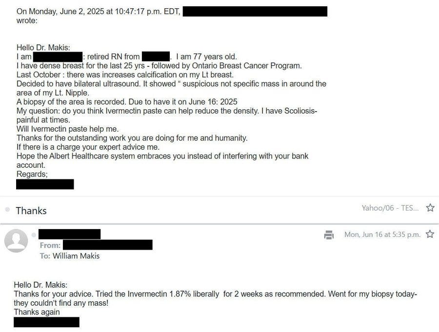 NEW ARTICLE: TOPICAL IVERMECTIN Testimonial - 77 year old Ontario Nurse with a new breast mass, which disappears by the time she is to get a biopsy!