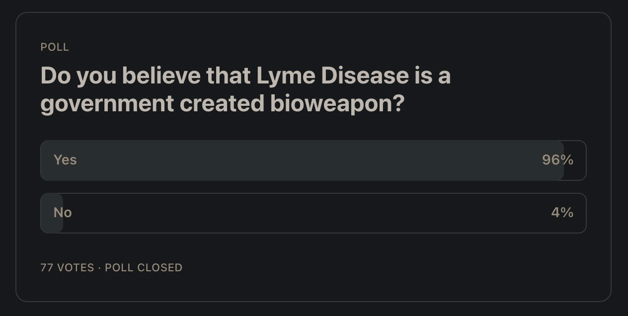 There has once again been a surge of Lyme Disease inquires sent to this Substack; for example, this email from yesterday: