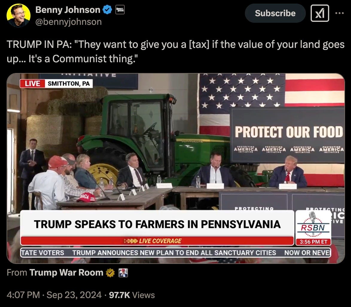 Property taxation is “an unrealized capital gain…”. And Trump is 100% correct that it is a “communist thing:”