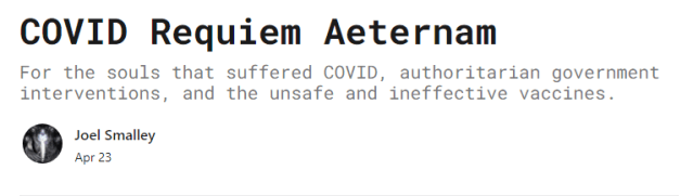 The following are excerpts from Covid Requiem Aeternam by Joel Smalley. You can read the full article, with his methodologies and graphs, HERE.