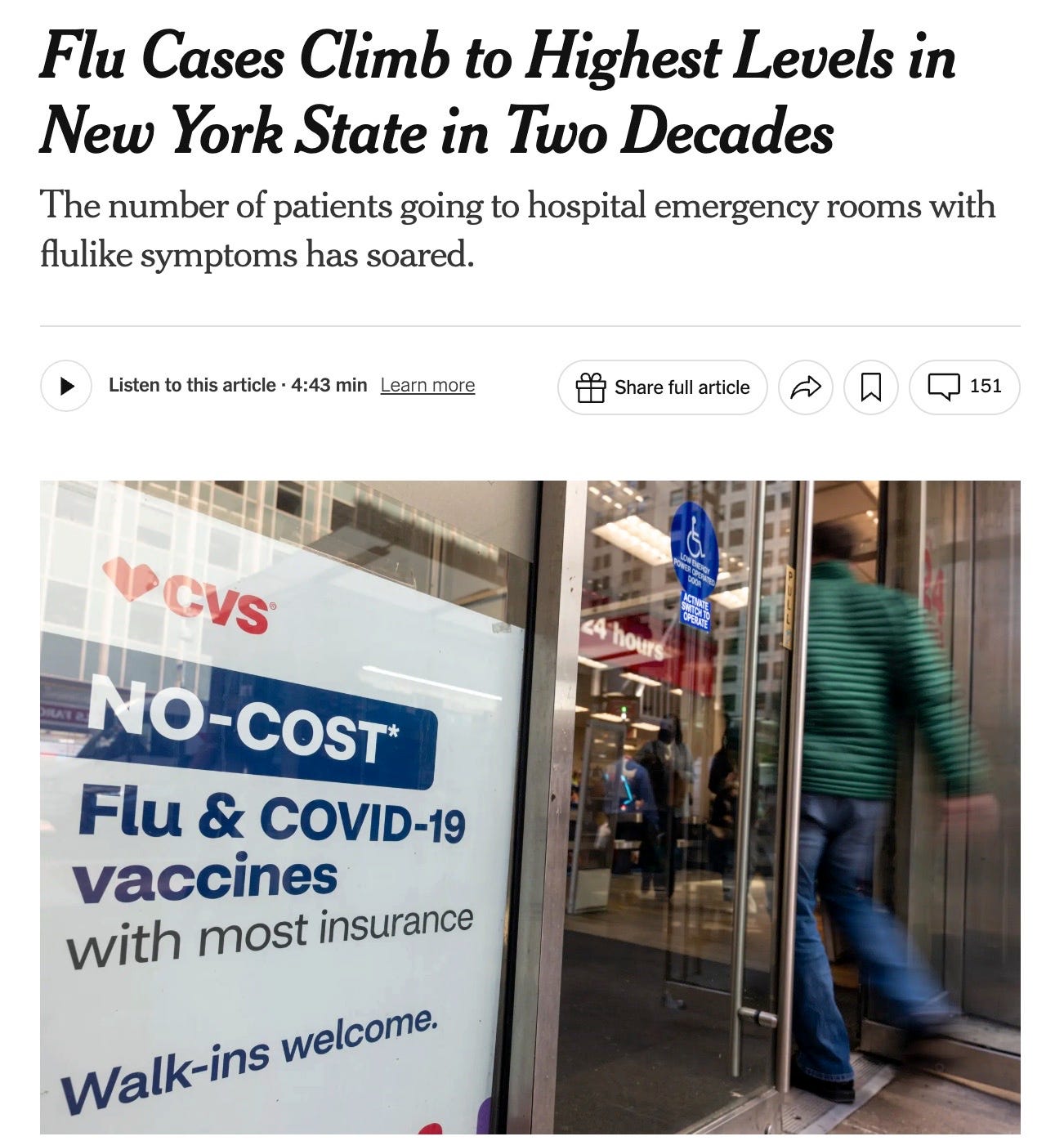 PSYOP-26 SCAMDEMIC INTENSIFYING: Flu Cases Climb to Highest Levels in New York State in Two Decades with the Number of Patients Going to Hospital Emergency Rooms with Flulike Symptoms Soaring