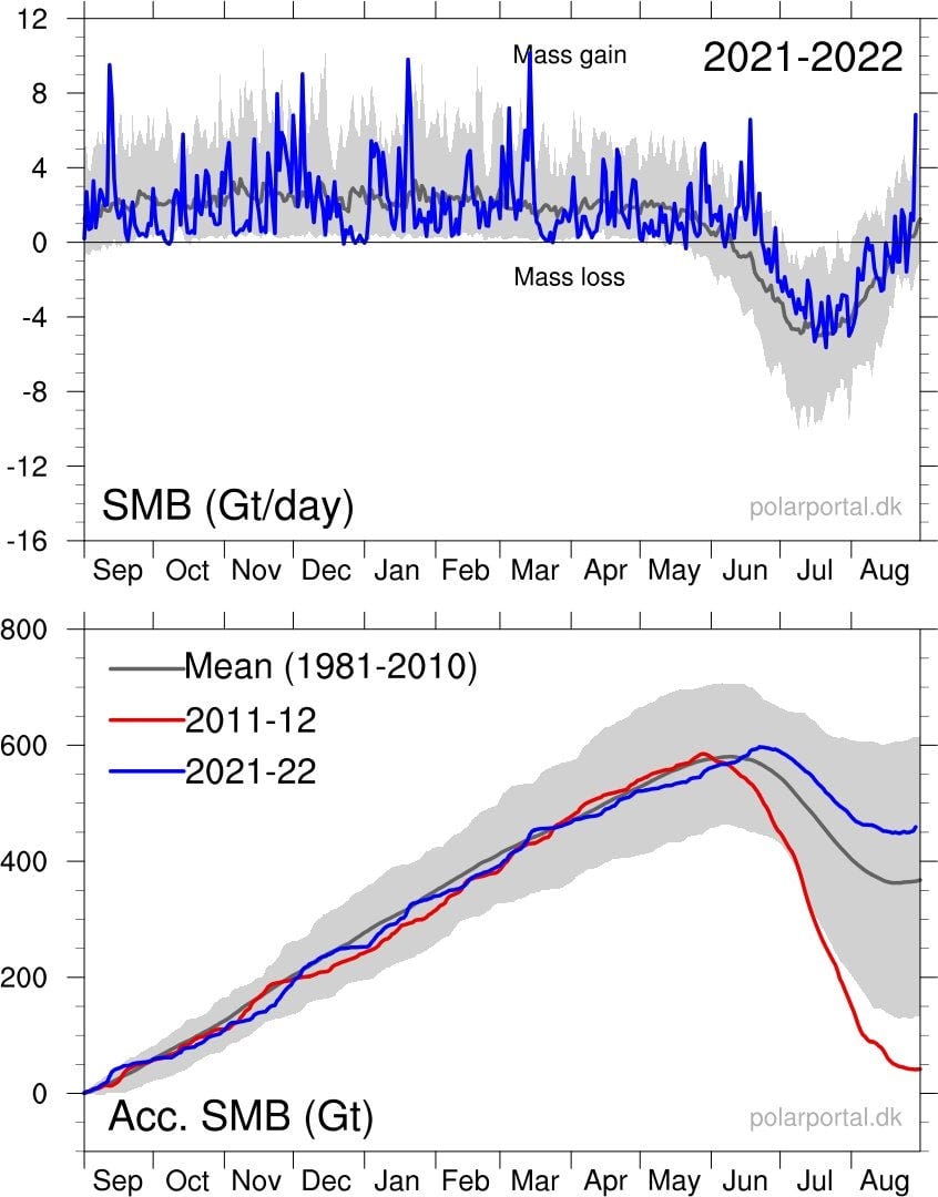 PSYOP-CLIMATE-CHANGE Debunked: Greenland Ice Sheet Gained 7 Gigatons Of Mass In Just One Day Yesterday — The Largest Daily Gain Ever Recorded During The Summer
