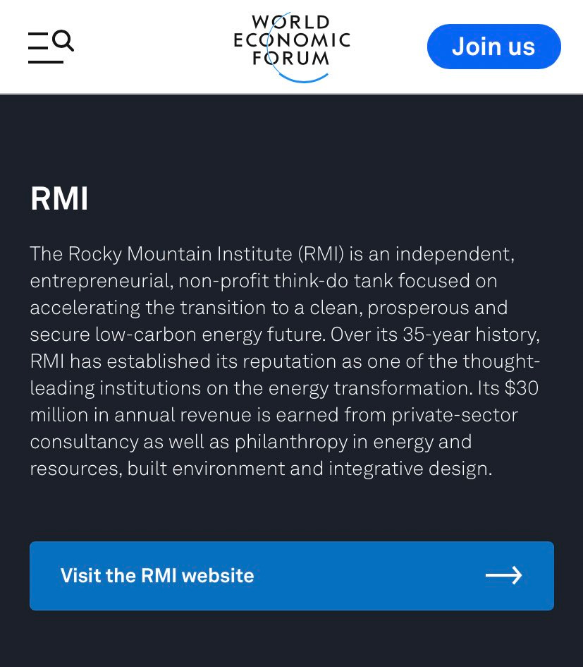 It so happens that the RMI can afford to be a “non-profit” precisely because it is in no small part funded by its WEF partner: