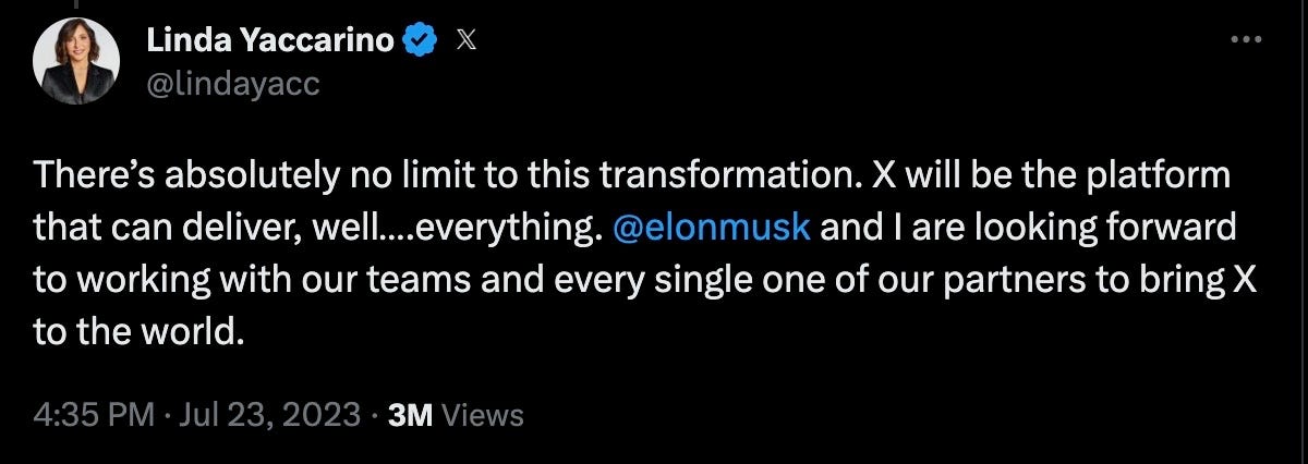 PSYOP-MUSK Welcomes WEF "Penetrator" Puppet Linda Yaccarino as the New CEO of Twitter