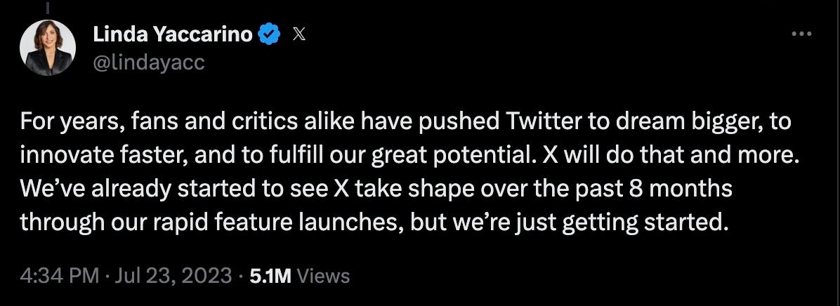 Now that Elon Musk has folded Twitter into the “X Corp” it is time to revisit this substack’s earlier article predicting this Deep State con inevitability. Tweets as of this posting no longer embed into Substack, so here is a screenshot that is linked to the fraudster’s announcement:
