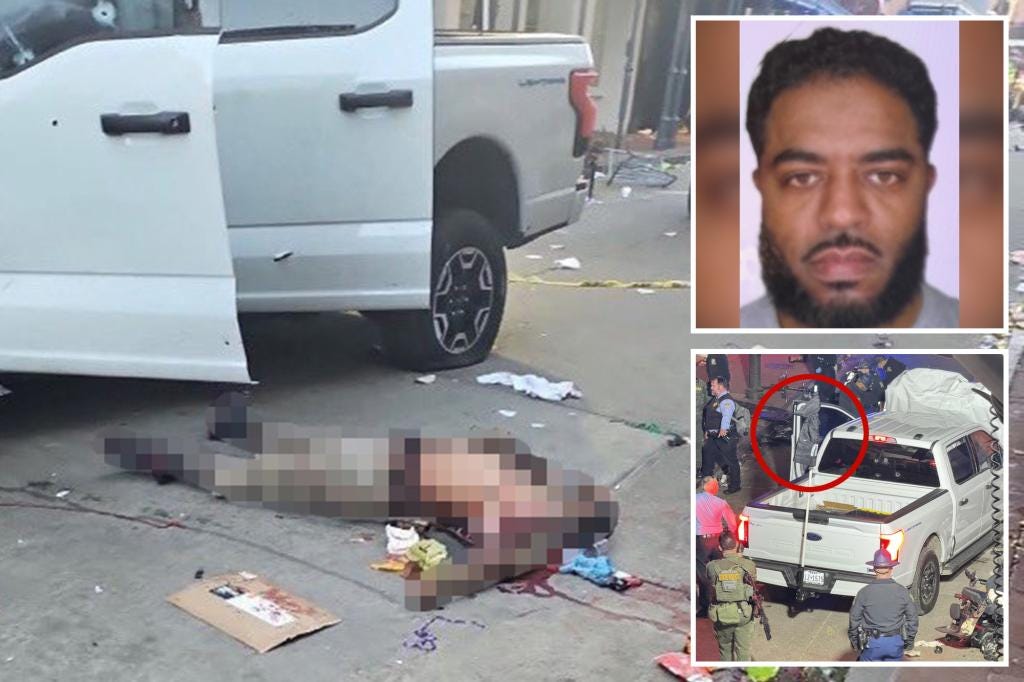 More than 30 people were injured and at least 15 killed during a New Year’s Day terror attack when US-born Army vet Shamsud-Din Jabbar rammed his pick-up truck into revelers on Bourbon Street in New Orleans in wee hours of the night.