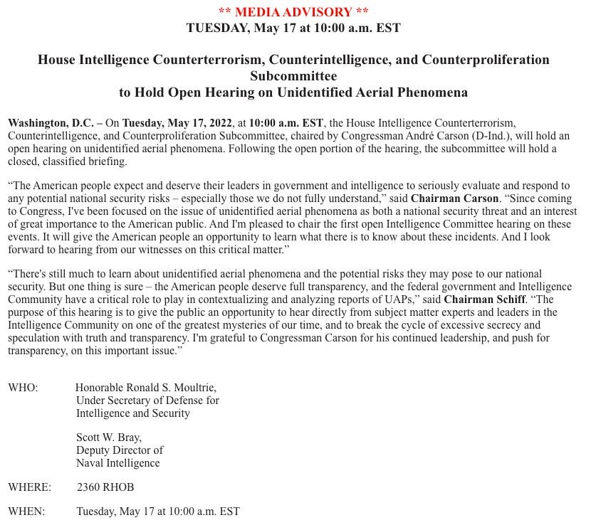 PSYOP-UAP-INVASION-23 On Deck: US House Subcommittee Will Hold Public Hearing on UFOs, Now Called Unidentified Aerial Vehicles For First Time In More Than Half A Century