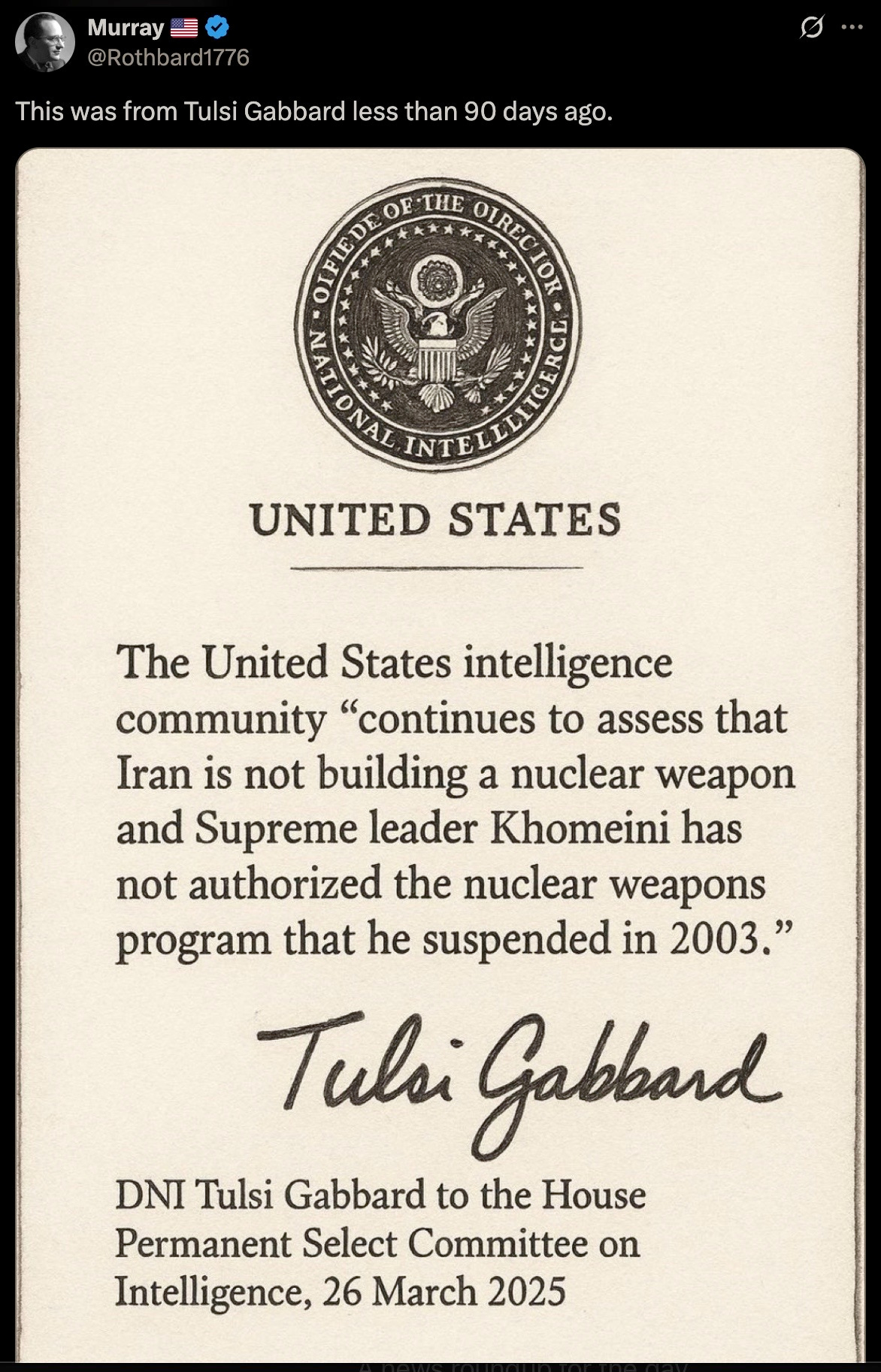 Added X post on Tulsi Gabbard re: Iran not having nuclear weapons.