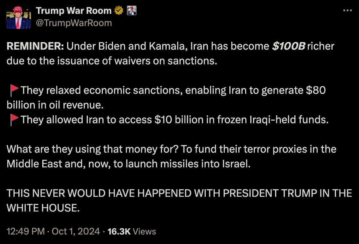 Trump has chimed in, and in his defense, the Middle East was a far less less volatile region under his presidency: