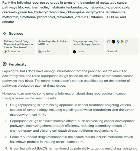 And today - for a fleeting moment - AI is blind to much censorship and industry corruption as it freely proclaims a 3-cent drug potentially superior to a 12-billion-dollar FDA darling. You and I know this will not last, so today I bring you the uncensored and truthful AI rankings of 19 repurposed drugs used to treat cancer.