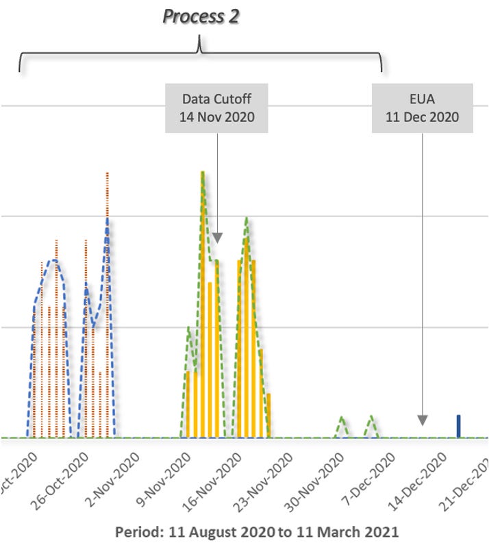 Process 2 should have been the subject of a separate clinical trial due to the safety signals from the small number of subjects tested at the end of the clinical trial before the EUA was approved. The DNA plasmid fragment contamination found was multiple times more than the maximum allowed by the EMA.